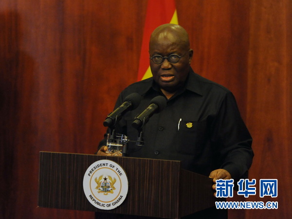4月10日,加納總統(tǒng)阿庫福-阿多致辭。新華網(wǎng)記者石松 攝