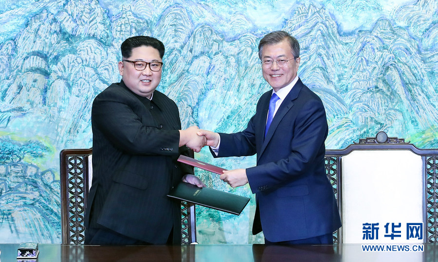 朝鮮最高領(lǐng)導(dǎo)人金正恩與韓國(guó)總統(tǒng)文在寅發(fā)表共同宣言