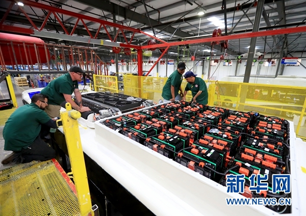 美國工人在比亞迪工廠內忙碌。新華網發(fā) 李穎攝
