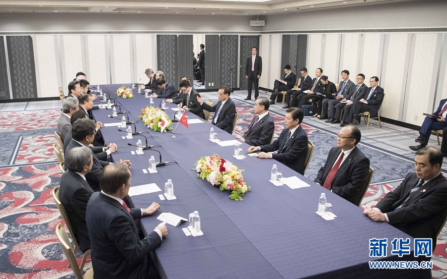 當(dāng)?shù)貢r(shí)間5月10日下午,國(guó)務(wù)院總理李克強(qiáng)在東京下榻飯店會(huì)見(jiàn)日本執(zhí)政黨負(fù)責(zé)人、自民黨干事長(zhǎng)二階俊博和公明黨代表山口那津男一行。新華社記者 李濤 攝