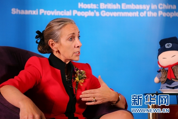 5月11日,第三屆“絲綢之路”國(guó)際博覽會(huì)暨中國(guó)東西部合作與投資貿(mào)易洽談會(huì)在西安開(kāi)幕。英國(guó)國(guó)際貿(mào)易部貿(mào)易與出口推廣國(guó)務(wù)大臣羅娜·費(fèi)爾海德,正在接受新華網(wǎng)專(zhuān)訪(fǎng)。新華網(wǎng)發(fā) 鞏陽(yáng)攝