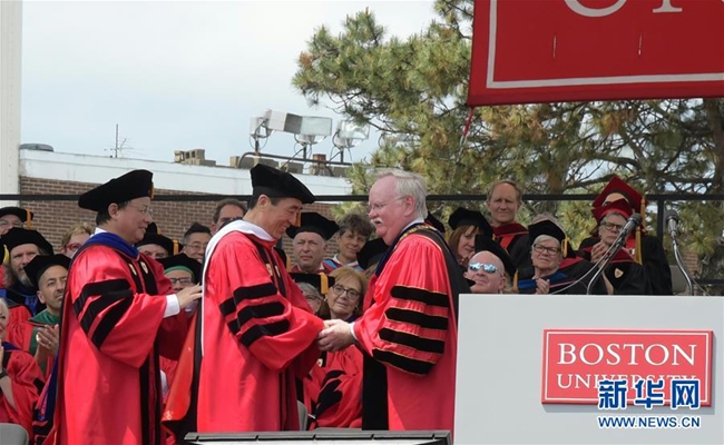 新華社美國波士頓5月20日電(記者徐劍梅)在美國波士頓大學20日舉行的2018屆畢業(yè)典禮上,中國導演張藝謀被授予波士頓大學人文藝術(shù)榮譽博士學位。