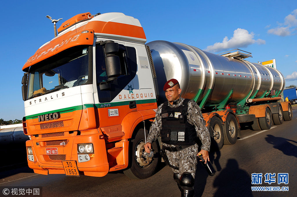 當?shù)貢r間2018年5月26日,巴西盧濟阿尼亞,卡車司機駕車封堵高速公路,抗議油價上漲。(圖片來源:視覺中國)