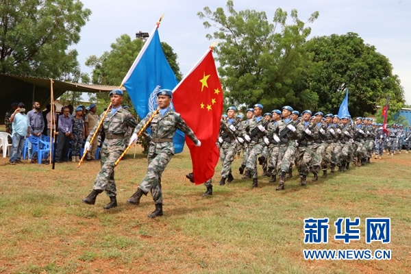 在隨后舉行的閱兵儀式上,中國維和部隊派出23名工兵組成的方隊。他們踏著雄壯的步伐,肩扛和平的旗幟,整齊地走過閱兵臺,展現(xiàn)了中國人民解放軍“威武之師、文明之師、勝利之師”的良好形象,受到聯(lián)合國在場人員高度評價。