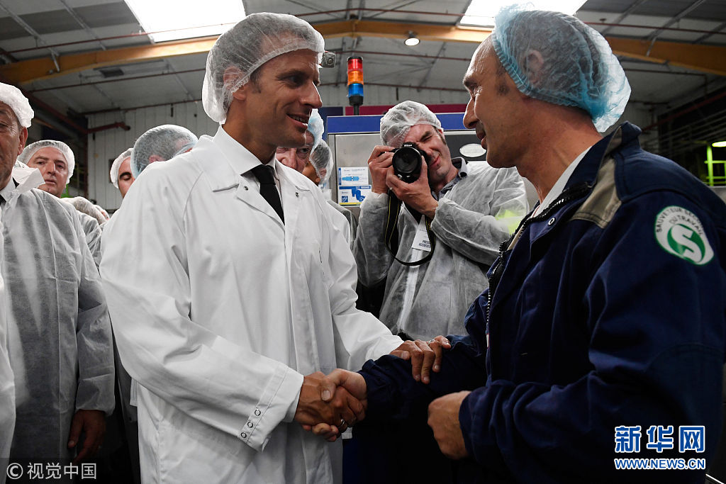 法國(guó)總統(tǒng)馬克龍變身“吃貨” 視察工廠不忘品嘗甜點(diǎn)
