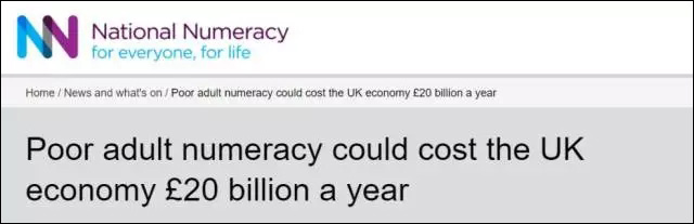 英國(guó)國(guó)家數(shù)學(xué)能力中心就曾“恨鐵不成鋼”地發(fā)布統(tǒng)計(jì)報(bào)告稱:英國(guó)成年人糟糕的數(shù)學(xué)水平會(huì)讓英國(guó)每年無意中損失200億英鎊。