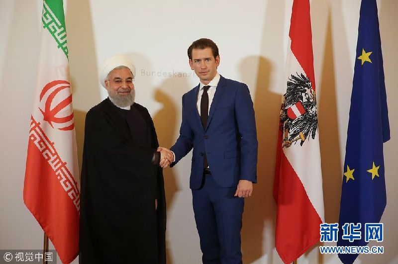 2018年7月4日,奧地利維也納,伊朗總統(tǒng)魯哈尼抵達(dá)奧地利進(jìn)行訪問,會(huì)晤?yuàn)W地利總理塞巴斯蒂安·庫(kù)爾茨。伊朗總統(tǒng)魯哈尼2日出發(fā)前往瑞士和奧地利訪問。他這次西歐行將重點(diǎn)討論伊朗核問題全面協(xié)議 (圖片來(lái)源:視覺中國(guó))