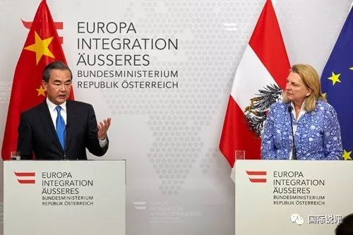 當?shù)貢r間2018年7月5日,國務委員兼外交部長王毅在維也納同奧地利外長克奈斯爾共同會見記者(圖自外交部)