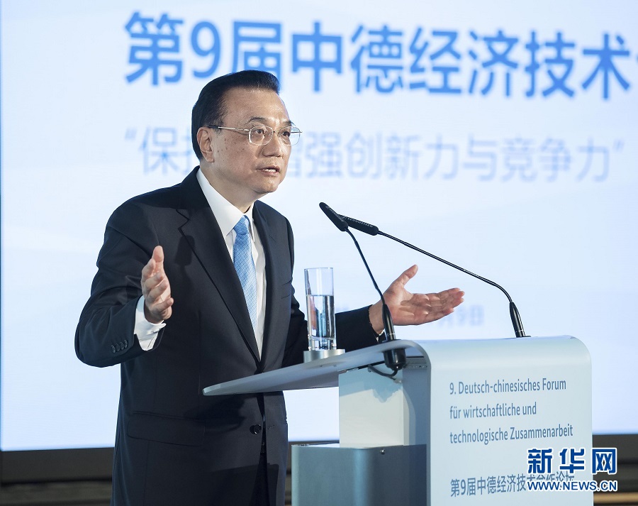 李克強(qiáng)表示,中德合作保持全面穩(wěn)定健康發(fā)展態(tài)勢,長期引領(lǐng)中歐合作,堪稱大國合作的典范,為兩國乃至世界經(jīng)濟(jì)發(fā)展注入了動(dòng)力。習(xí)近平主席去年對(duì)德國進(jìn)行成功訪問,同德方領(lǐng)導(dǎo)人共同規(guī)劃兩國關(guān)系發(fā)展。我與默克爾總理今天共同主持第五輪中德政府磋商,達(dá)成重要共識(shí)。我們一致同意繼續(xù)鞏固和提升政治互信,夯實(shí)中德全方位戰(zhàn)略伙伴關(guān)系的基礎(chǔ),推動(dòng)兩國合作向更高水平邁進(jìn),以中德合作的確定性、維護(hù)多邊主義的一貫性為世界和平與發(fā)展增添穩(wěn)定性。