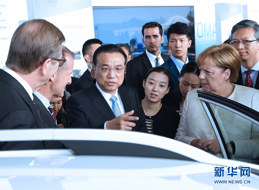 當(dāng)?shù)貢r(shí)間7月10日上午,國務(wù)院總理李克強(qiáng)在柏林與德國總理默克爾共同出席中德自動(dòng)駕駛汽車展示活動(dòng)。 新華社記者 饒愛民 攝
