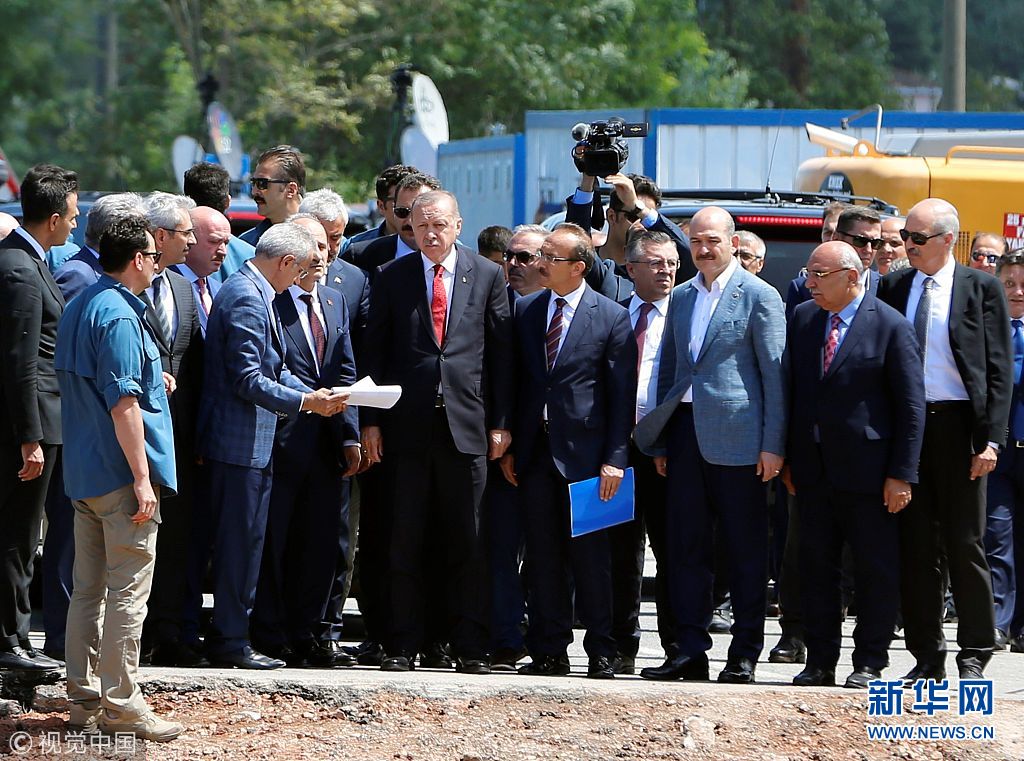 當(dāng)?shù)貢r間2018年8月11日,土耳其奧爾杜,土耳其總統(tǒng)埃爾多安赴當(dāng)?shù)匾暡旌闉?zāi)區(qū)。 (圖片來源:視覺中國)
