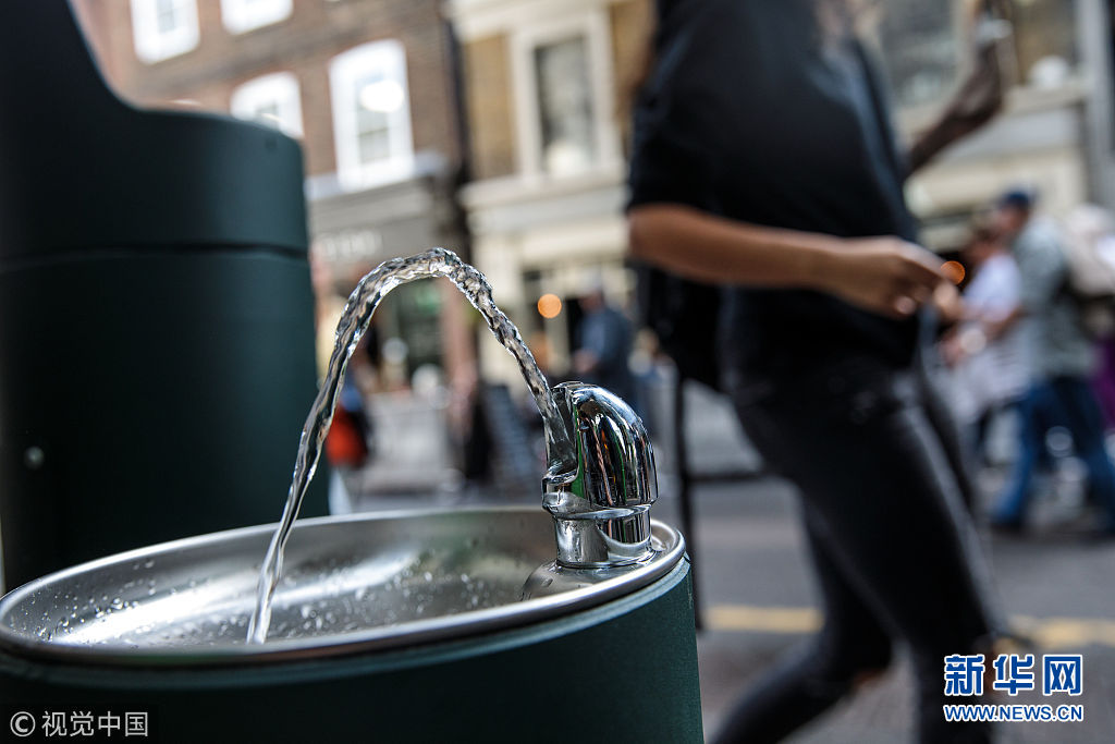 當(dāng)?shù)貢r間2018年8月28日,英國倫敦,民眾在公共飲水機(jī)旁飲水。倫敦市長近日引進(jìn)了20個新的公共飲水機(jī),鼓勵人們自帶杯子取水喝,從而減少塑料垃圾。 (圖片來源:視覺中國)