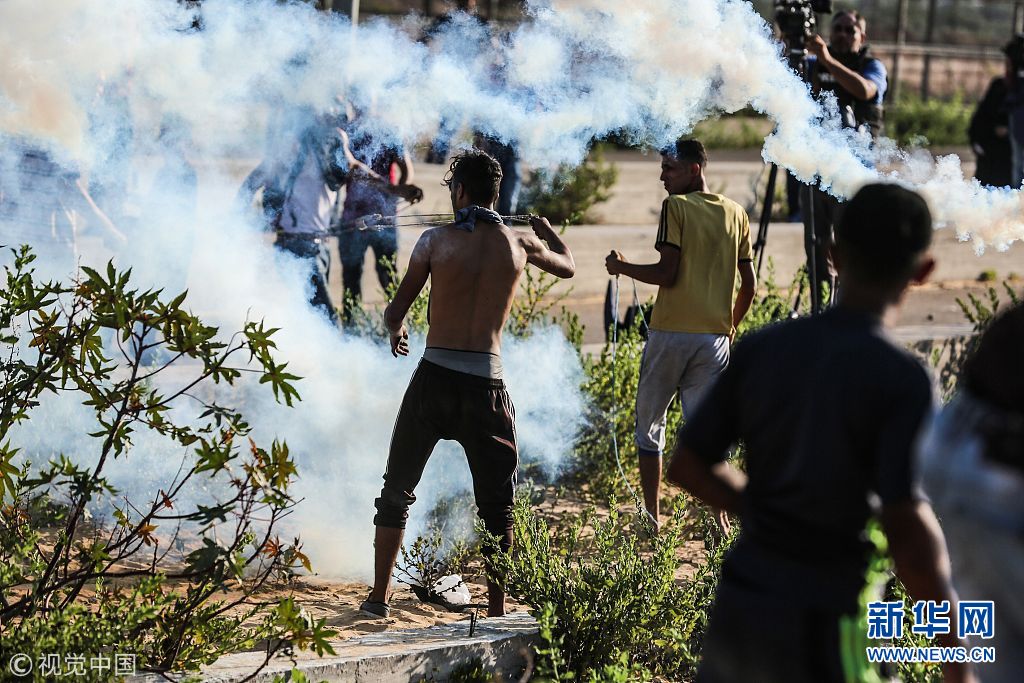 ????? 當(dāng)?shù)貢r間2018年9月18日,加沙,巴勒斯坦人在加沙地帶北部邊境緩沖地帶舉行集會,抗議以色列對該地區(qū)的干預(yù),遭到以色列軍隊反擊。兩名巴勒斯坦抗議者在集會上被以軍士兵開槍打死。(圖片來源:視覺中國)