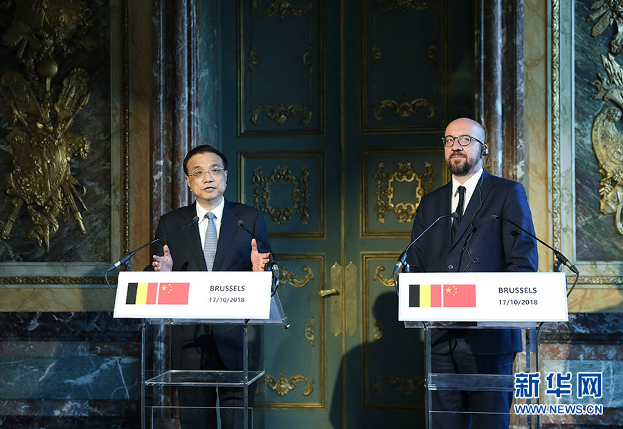 新華社布魯塞爾10月17日電(記者鄭明達(dá) 翟偉)當(dāng)?shù)貢r間10月17日上午,國務(wù)院總理李克強在布魯塞爾埃格蒙宮與比利時首相米歇爾共同會見記者。