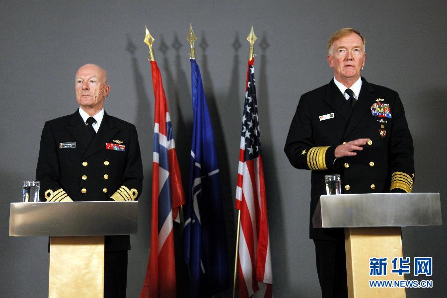 10月25日,在挪威首都奧斯陸,挪威國防司令、海軍上將哈康·布倫-漢森(左)和美國海軍上將詹姆斯·福戈介紹軍演情況。 當(dāng)日,北大西洋公約組織(北約)開始在挪威及其周邊地區(qū)舉行為期兩周的“三叉戟接點(diǎn)2018”聯(lián)合軍事演習(xí)。這是北約自冷戰(zhàn)結(jié)束以來規(guī)模最大的一次聯(lián)合軍演。 新華社記者 梁有昶 攝