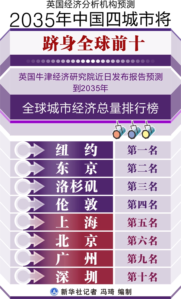英國經(jīng)濟(jì)分析機構(gòu)預(yù)測2035年中國四城市將躋身全球前十 新華社記者 馮琦 編制