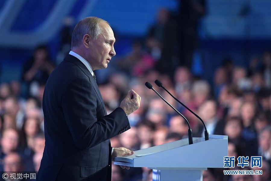 當(dāng)?shù)貢r(shí)間2018年12月8日,俄羅斯莫斯科,俄羅斯執(zhí)政黨“統(tǒng)一俄羅斯黨”年度會(huì)議舉行,俄羅斯總統(tǒng)普京和總理梅德韋杰夫出席會(huì)議。(圖片來(lái)源:視覺(jué)中國(guó))