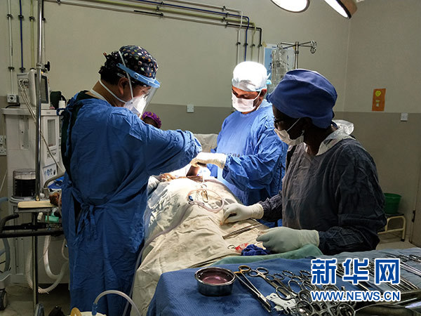 這張2018年8月21日拍攝的照片顯示,在馬拉維首都利隆圭的卡姆祖中心醫(yī)院,中國醫(yī)療隊婦產(chǎn)科醫(yī)生為當(dāng)?shù)孛癖妼嵤┦中g(shù)。新華社發(fā)(第六批中國援馬拉維醫(yī)療隊供圖)
