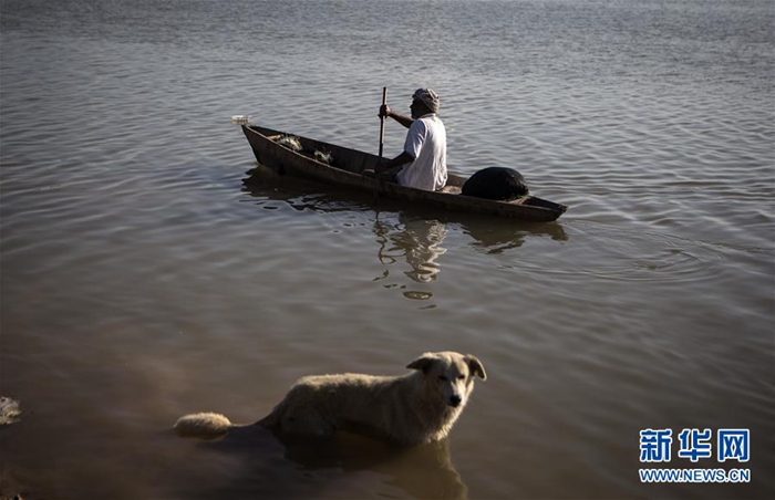 4月10日,在伊朗胡齊斯坦省,居民劃船出行。近期,伊朗境內(nèi)持續(xù)洪澇災害。新華社發(fā)(艾哈邁德·哈拉比薩斯 攝)