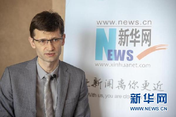 4月26日,白俄羅斯中國(guó)問(wèn)題專(zhuān)家蘇加克接受新華網(wǎng)采訪。新華網(wǎng)發(fā) 郭小天 攝