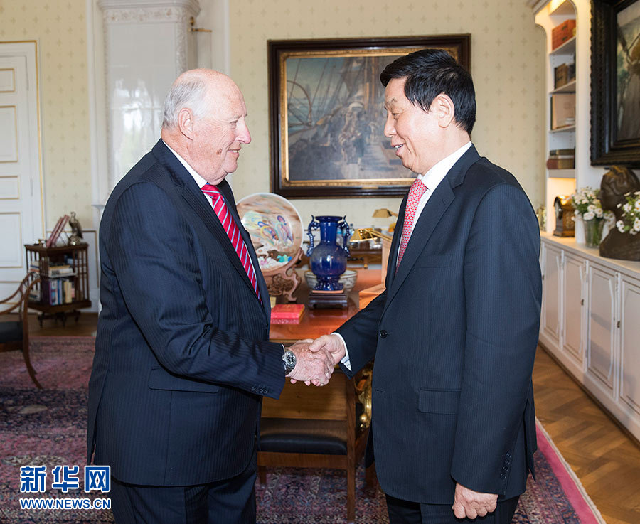 5月15日至18日,應挪威議長特羅恩邀請,全國人大常委會委員長栗戰(zhàn)書對挪威進行正式友好訪問。這是5月16日,栗戰(zhàn)書在奧斯陸會見挪威國王哈拉爾五世。 新華社記者 黃敬文 攝