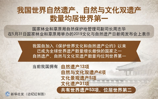 我國世界自然遺產(chǎn)、自然與文化雙遺產(chǎn)數(shù)量均居世界第一