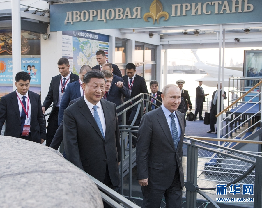 6月6日,國家主席習(xí)近平在圣彼得堡同俄羅斯總統(tǒng)普京再次舉行會(huì)晤。普京邀請(qǐng)習(xí)近平共同乘船游覽涅瓦河。 新華社記者 李學(xué)仁 攝
