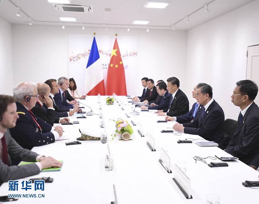6月29日,國家主席習近平在大阪會見法國總統(tǒng)馬克龍。 新華社記者 燕雁 攝