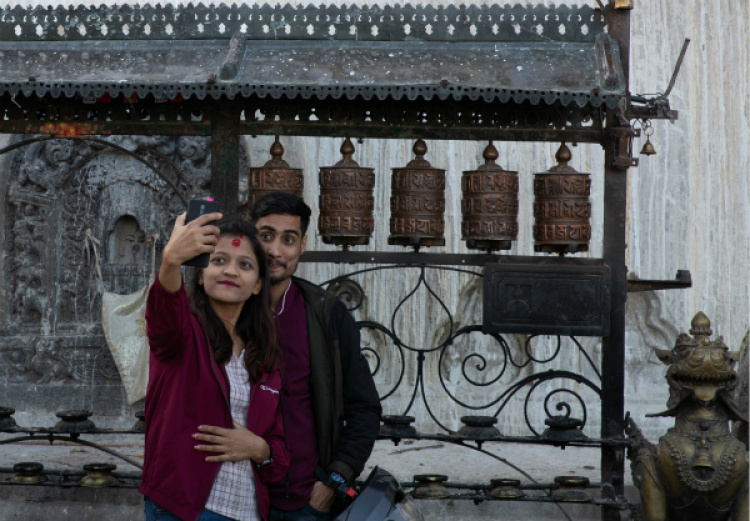 山多、古跡多、節(jié)日多是尼泊爾為人津津樂(lè)道的三個(gè)特色?!暗沦惞?jié)”是尼泊爾的最大節(jié)日。與中國(guó)人過(guò)春節(jié)習(xí)俗相似,尼泊爾人也要在節(jié)日期間家庭團(tuán)聚、走親訪友。額頭的紅色“提卡”是來(lái)自長(zhǎng)輩的祝福。新華社記者王婧嬙攝