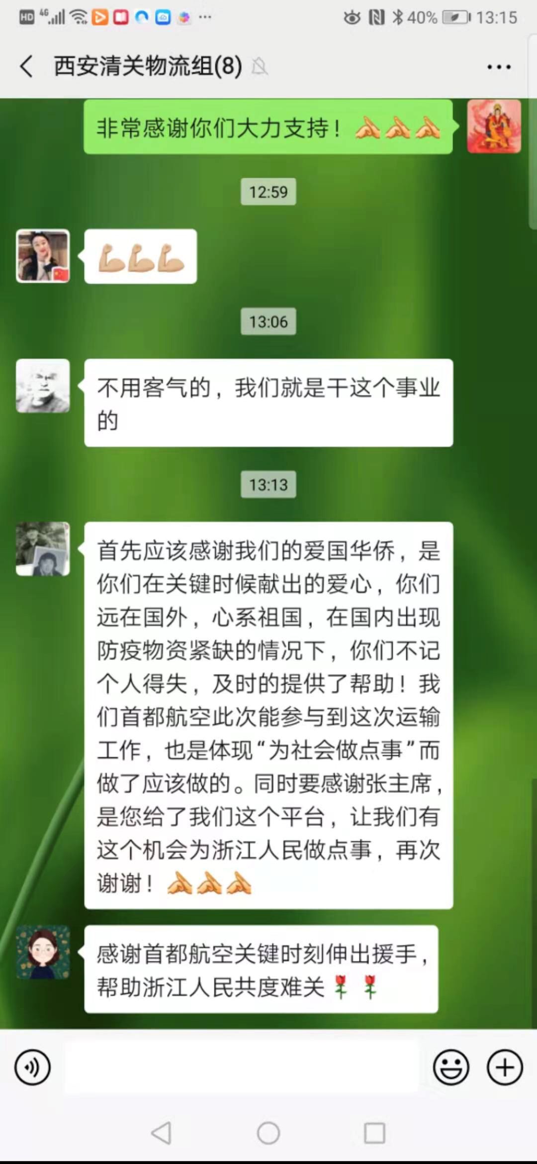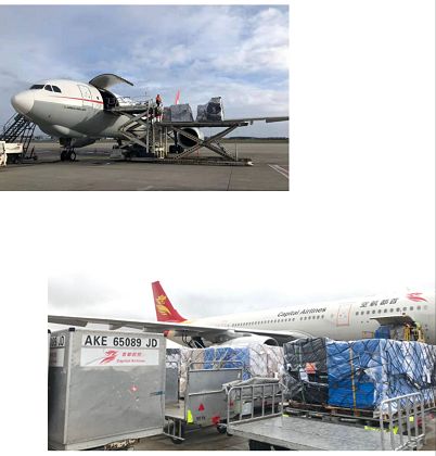 特別值得一提的是海航集團的譚向東副董事長、高建副總裁,為了協(xié)助我們把捐贈物資盡快運回國內(nèi),高度重視,靠前指揮,第一時間給予全面而具體的支持。旗下的首都航空公司市場部副總顧凌毅、貨運中心高級經(jīng)理田國偉協(xié)調(diào)陳肖藝、倪福元、李小戈、首航西安基地總監(jiān)周瑞喜、海航速運境外管理部副總經(jīng)理池夢瑩以及郭宇萍等一批業(yè)務(wù)骨干加班加點,克服了時間緊張,物資量大,境外時差等諸多困難,創(chuàng)造了許多個“首航第一次”。蟠龍國際集團、中遠海運航空公司則為這場“空中接力”提供了高端快捷的航空物流平臺。而在第四批物資回運過程中,更是得到了溫州市防疫指揮部的鼎力相助,幫助我們把西班牙巴塞羅那收集點上的捐贈物資,從布魯塞爾轉(zhuǎn)道回國。