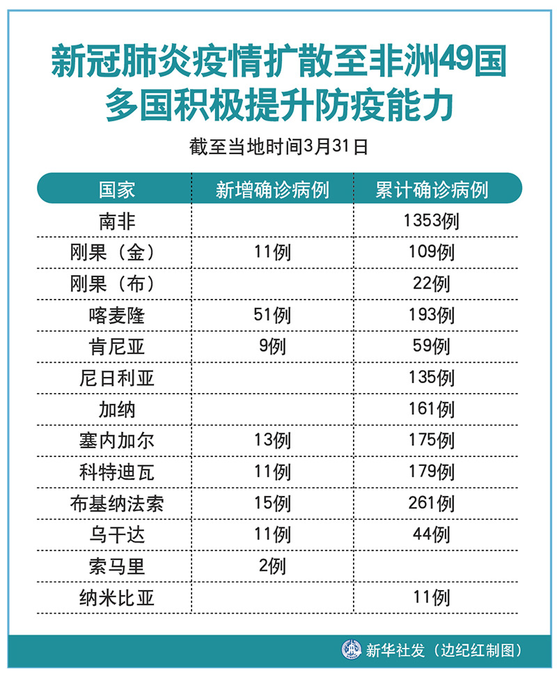 3月31日,塞拉利昂和布隆迪分別首次報(bào)告了新冠肺炎確診病例;坦桑尼亞、博茨瓦納、塞內(nèi)加爾和剛果(布)均報(bào)告了首例新冠肺炎死亡病例;剛果(金)確診病例過(guò)百。
