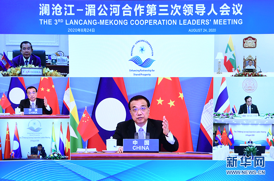 8月24日,國務(wù)院總理李克強在北京人民大會堂出席瀾滄江-湄公河合作第三次領(lǐng)導(dǎo)人視頻會議。李克強和老撾總理通倫共同主持會議。柬埔寨首相洪森、緬甸總統(tǒng)溫敏、泰國總理巴育、越南總理阮春福出席。 新華社記者 饒愛民 攝