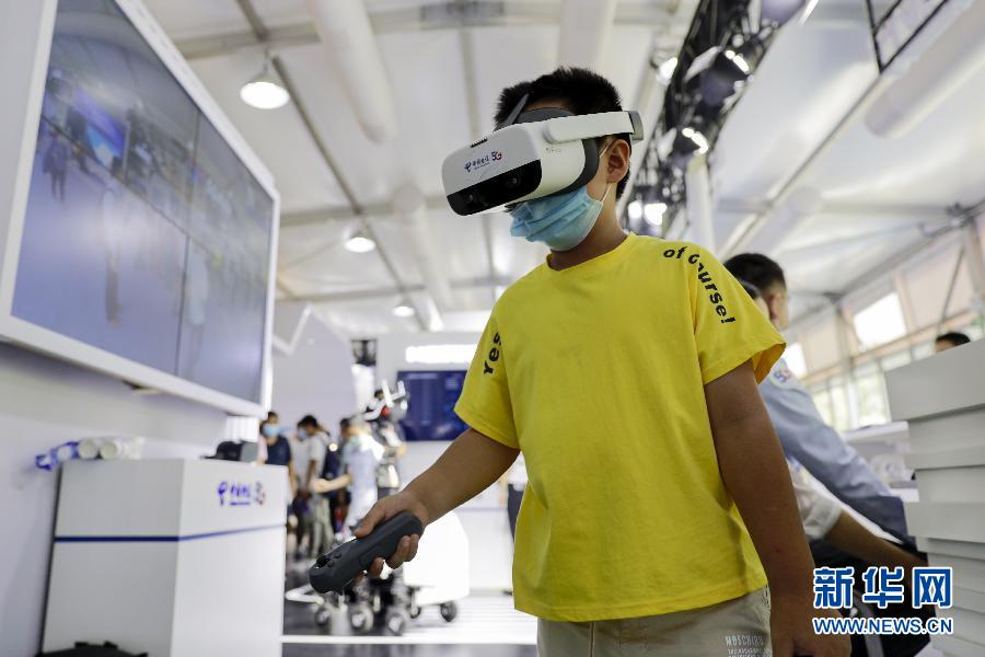 9月5日,一名小朋友在服貿(mào)會(huì)5G通信服務(wù)專題專區(qū)體驗(yàn)VR游戲。新華社記者 李木子 攝
