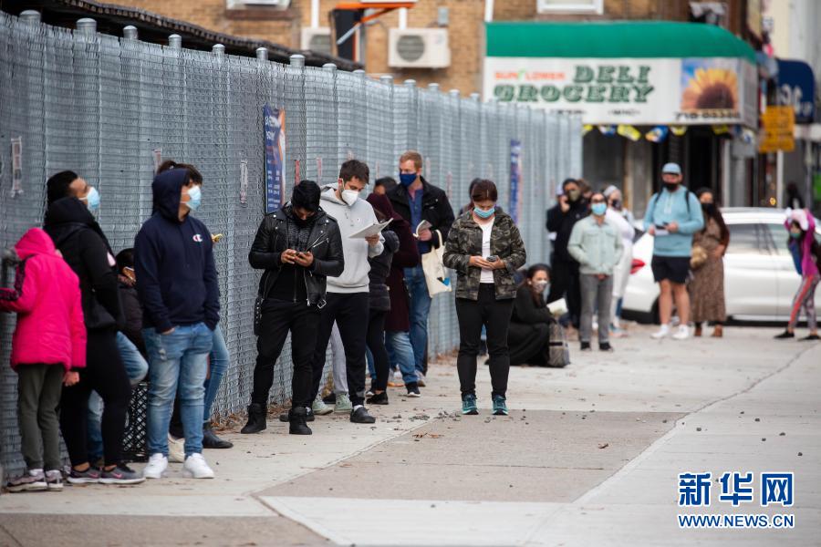 11月21日,人們?cè)诿绹?guó)紐約排隊(duì)等待接受新冠病毒檢測(cè)。新華社發(fā)(郭克 攝)