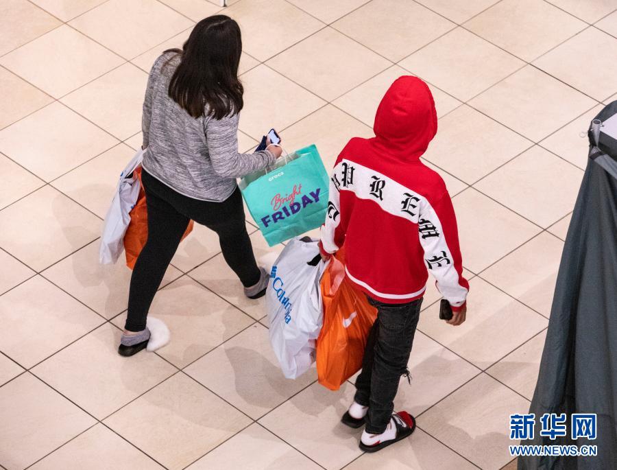 11月27日,在美國伊利諾伊州羅斯芒特,人們在一家購物中心購物。