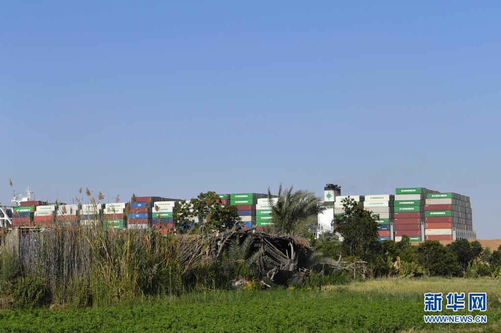 這是3月29日拍攝的移動至埃及蘇伊士運河正常航道上的重型貨輪。新華社發(fā)(艾哈邁德·戈馬 攝)