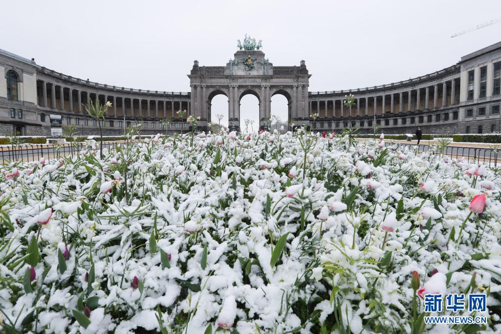比利時(shí)近日迎來春雪,首都布魯塞爾銀裝素裹,景色別致。
