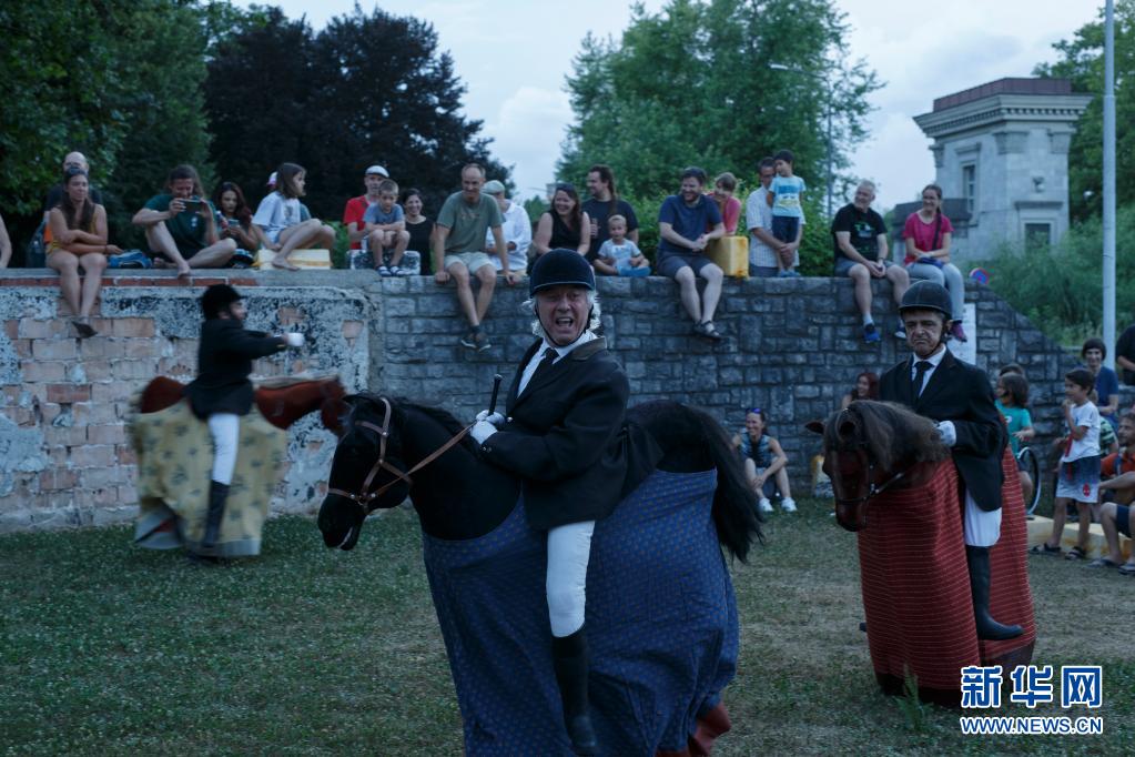 6月30日傍晚,藝術(shù)工作者在斯洛文尼亞首都盧布爾雅那進行街頭戲劇節(jié)表演。