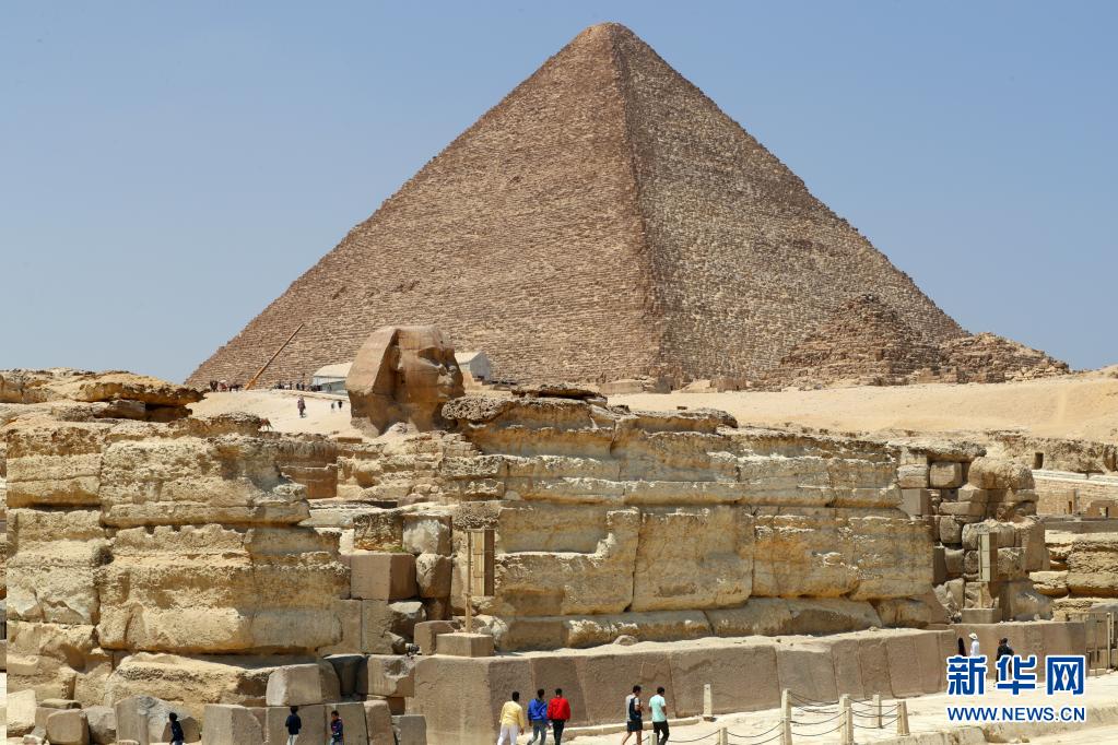 4月26日,游客在位于埃及吉薩省的金字塔群景區(qū)內游玩。